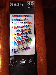 Vocês não imaginam os pares de sapatos que eu tenho sem ter sítio para os guardar. Aqui talvez até consiga guardar as malas na parte de cima se sobrar algum espaço. Preço € 9,90.