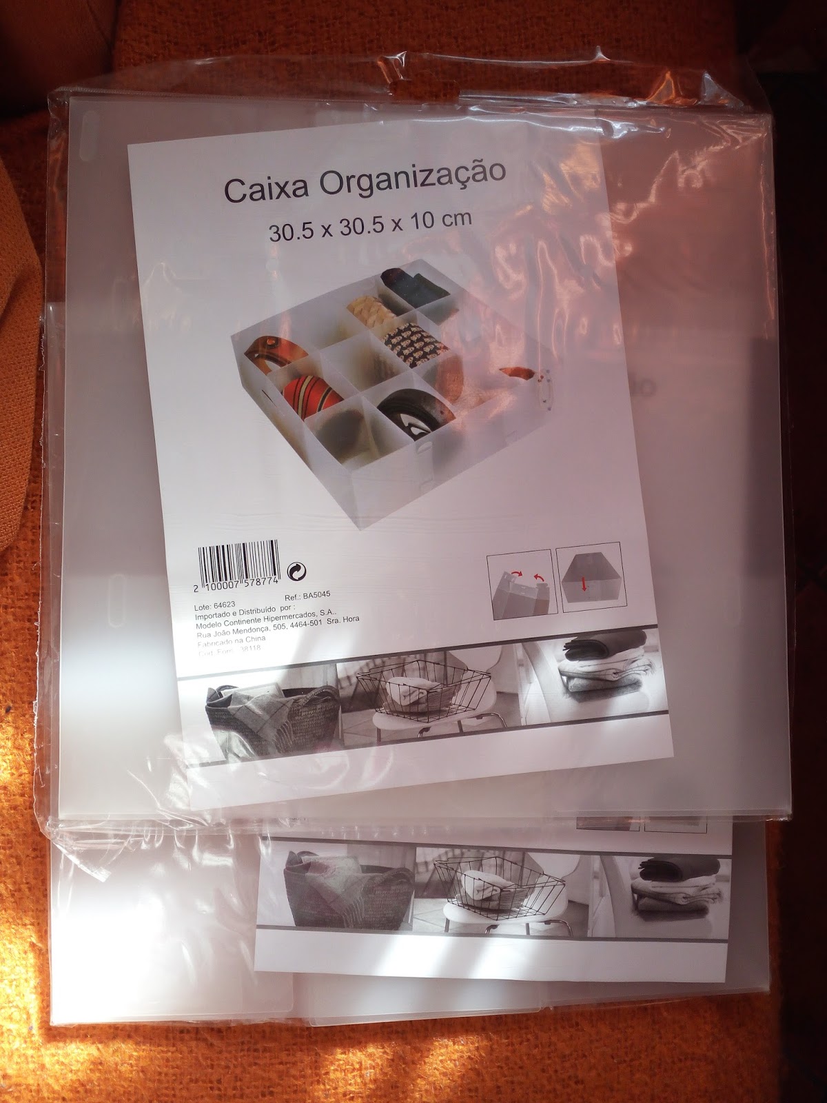 Caixa de Organização. Estas comprei com o intuito de organizar a roupa interior, nomeadamente as meias mas... Vou esperar por abrir e ver como é e aí decidir o destino desta caixas. Cada caixa custou € 1,90.